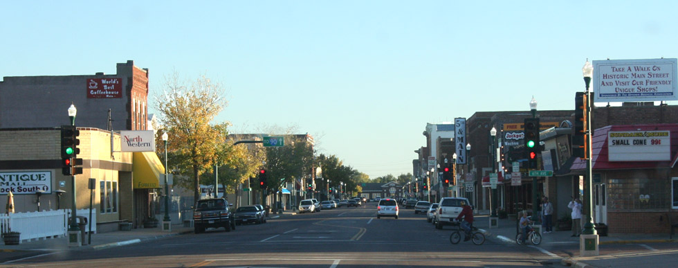 Left: Gambling is legal in South Dakota, and casinos abound, throughout the state, though some areas have local ordinances against them. Below: Another look down Main Street. |