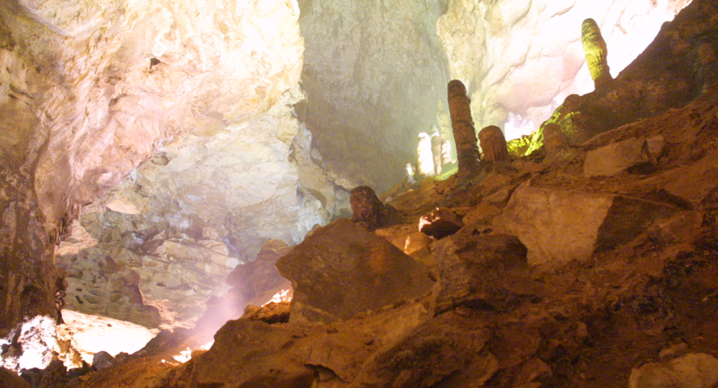 of switchbacks, before the main level of the cavern is reached. These chambers