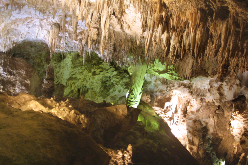 stalagmites to the right of the photo, are twenty to twenty five feet tall.