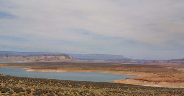 More of the desert and rock formations of Utah. The water in the foreground is a bit of the 180 mile long flooded out Colorado River, known as Lake Powell.