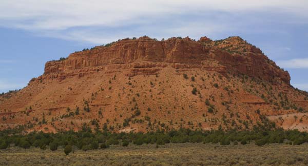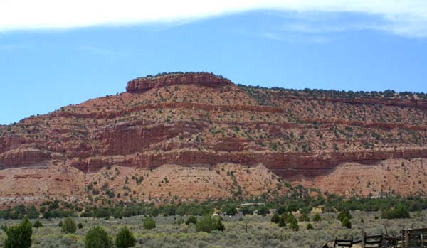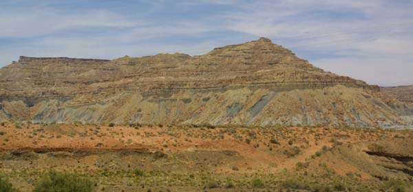 Though we have left the Grand Canyon, hundreds of miles back, the canyon series of rocks are still with us. These are the same formations, though eroded to a lesser extent, that we saw so colorfully exposed in the canyon.