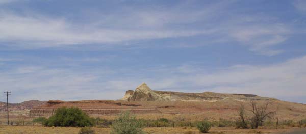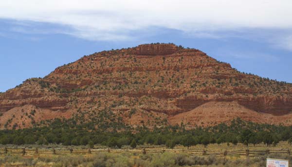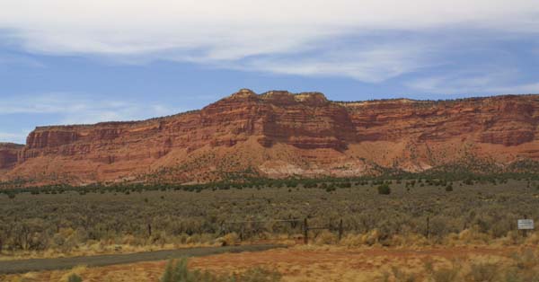 A few peaks, some fencing and an advertisement. We will soon be in Kanob, and then enter the wondrous area of Zion. The desolation is now broken by occasional glimpses of civilization.