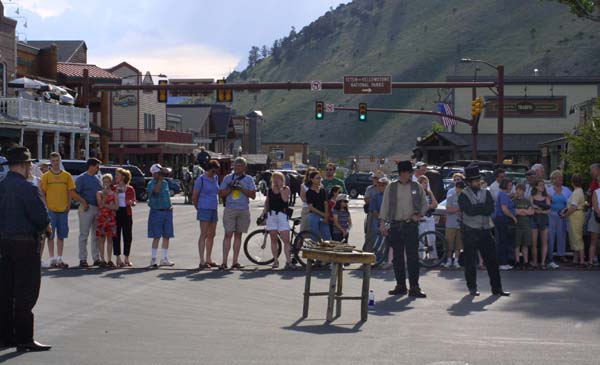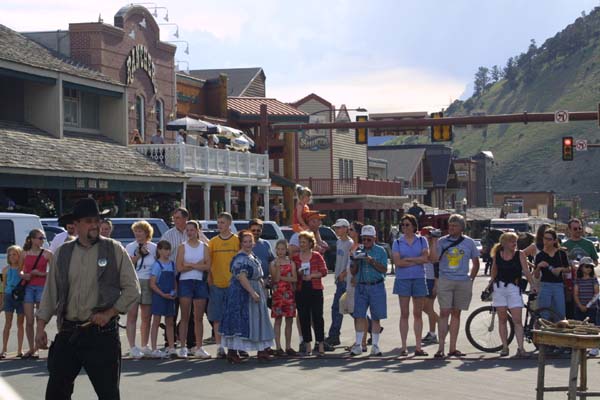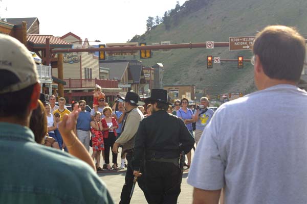 A cowboy melodrama is staged for the benefit of tourists, who begin
