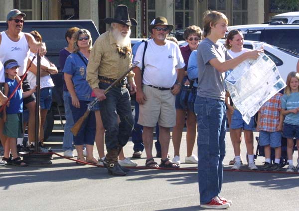 With a sufficient crowd gathered, the sheriff goes about his business,