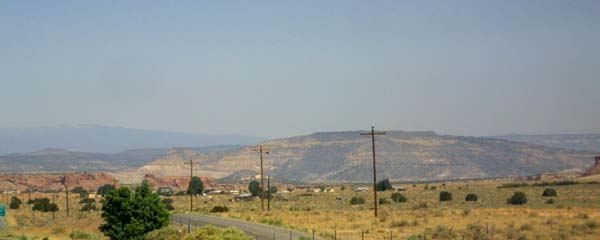 Scrub covered mesas with juniper bushes and sage. |
