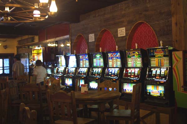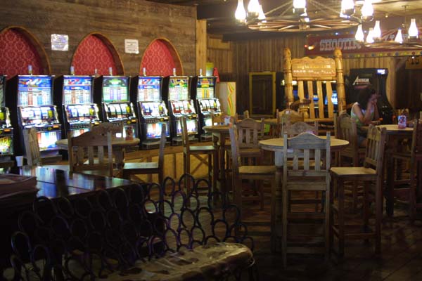 A part of the entrance foyer, with games, slot machines, and the largest rocking chair in Texas (or is that the world?).