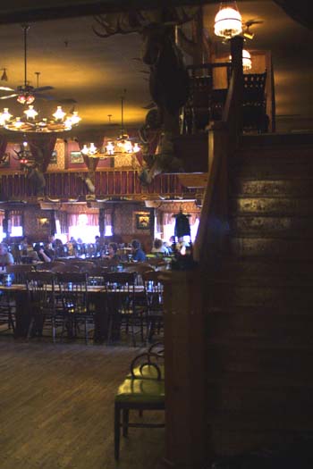 Inside the dining room of the Big Texan Looking out towards the foyer and entrance.