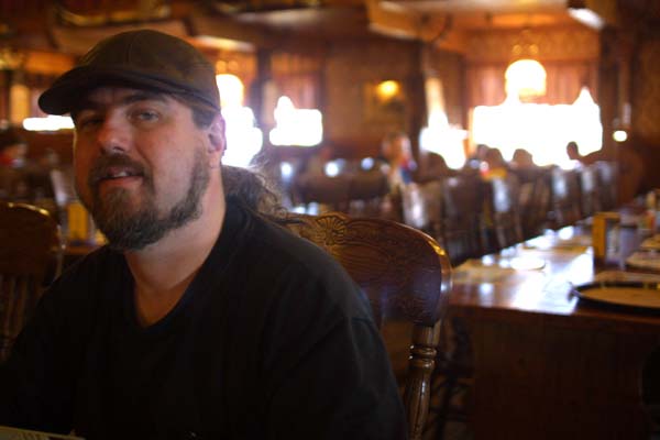 My brother sitting in the Big Texan. Though I may never be forgiven for posting this photo, this is as natural and representative a photo as I have of him.