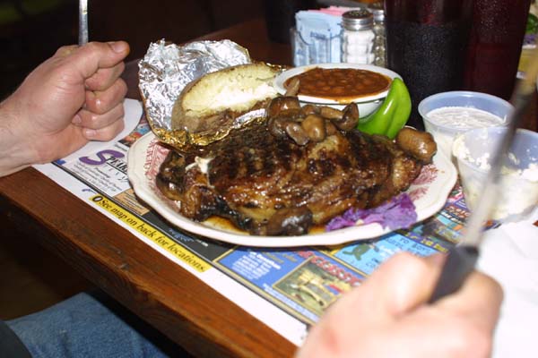 My brother's huge porterhouse. He actually finished it. Though it was a mere 24 ounce steak, as opposed to the 72 ounce monster, he was quite full.