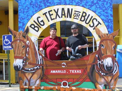 Another cut out, in the lot of the Big Texan. The two middle aged guys in the "wagon" are my brother and myself. This photograph horrified us both, as this was not the way we pictured ourselves.