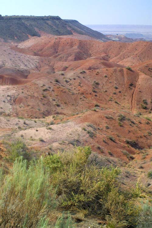 A view past the folds of the painted Desert to a line of cliffs