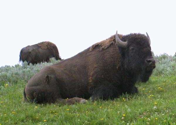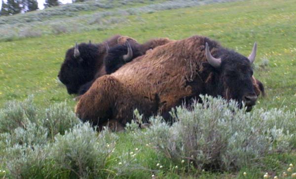 Resting up from a busy day, these buffalo almost look docile with