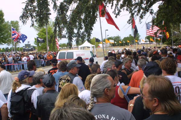Off to the racesThe gates are open, and the rush is on to secure good spot near the front of the stage. |