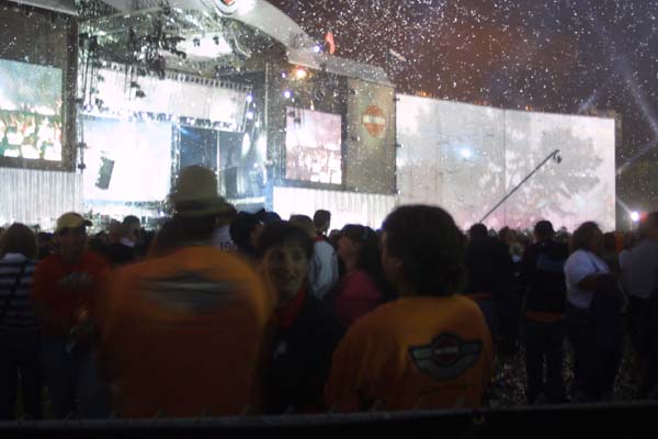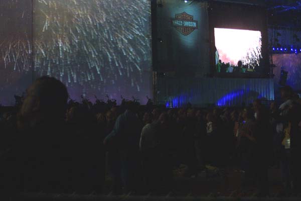 screens of scenes of the new Harley davidson motorcycles rumbling down the