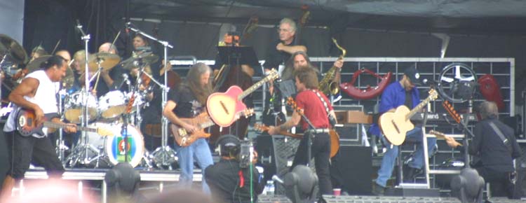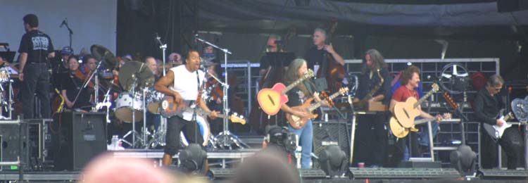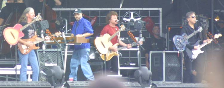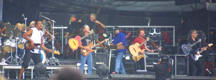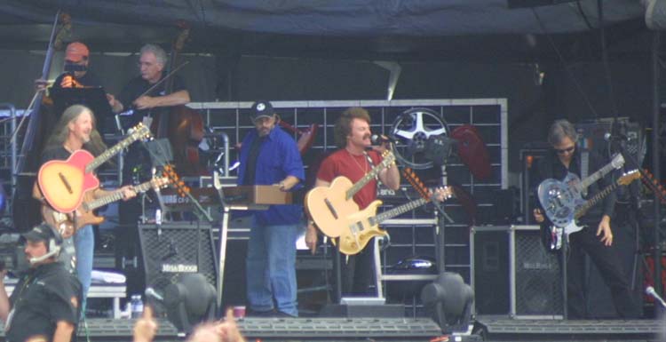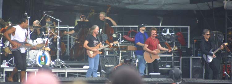 2 aircraft flying overhead, while the curtain went up on the Doobie Brothers.