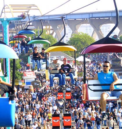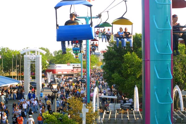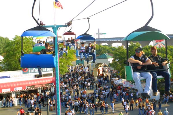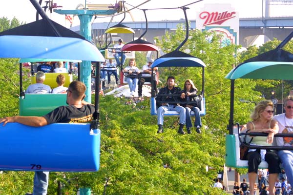 a ski lift, built over the Summerfest grounds. |