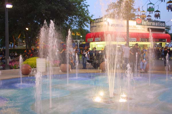 | The fountains by the information booth,