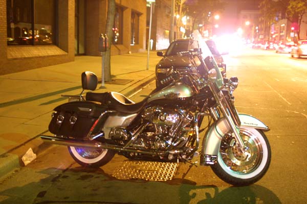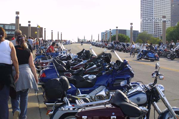 More motorcycles, looking down north along the drive. Lake Michigan