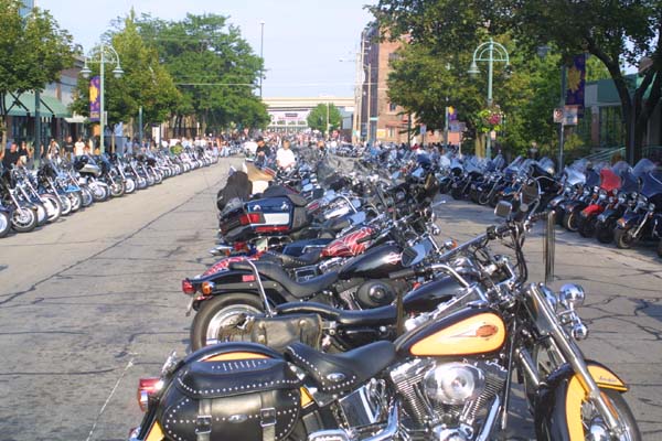 many other streets, a gigantic motorcycle parking lot and bike show. |