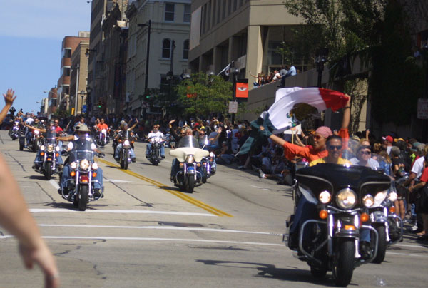 Zealand. Here they round the corner of Milwaukee and Wisconsin, trying to