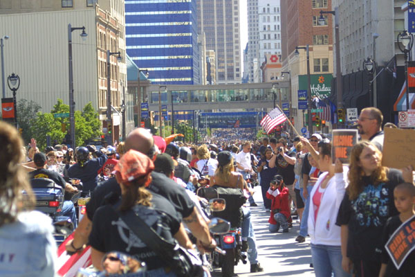 hell. From time to time the parade stopped completely until traffic officers
