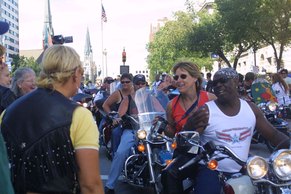 and their bikes. Everyone wants to see, talk to, and even touch the motorcyclists