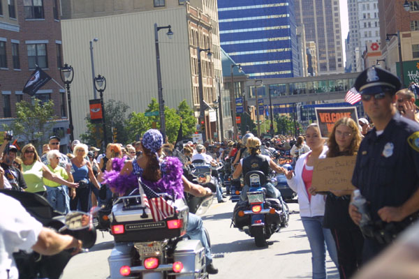 ordered the crowds back to let the bikers through.