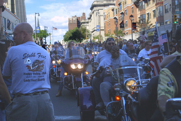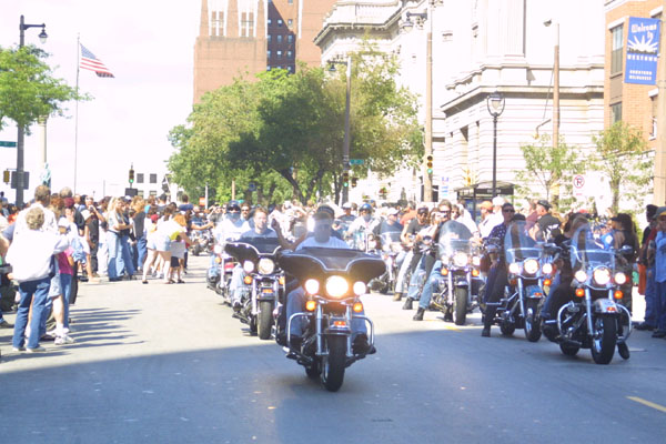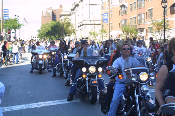 A couple of columns of reunion riders come