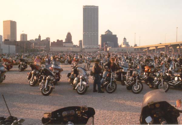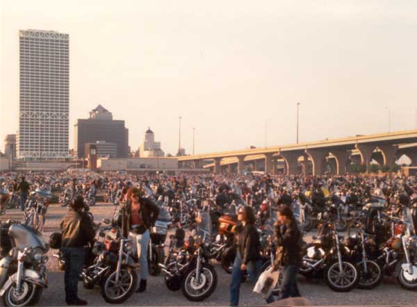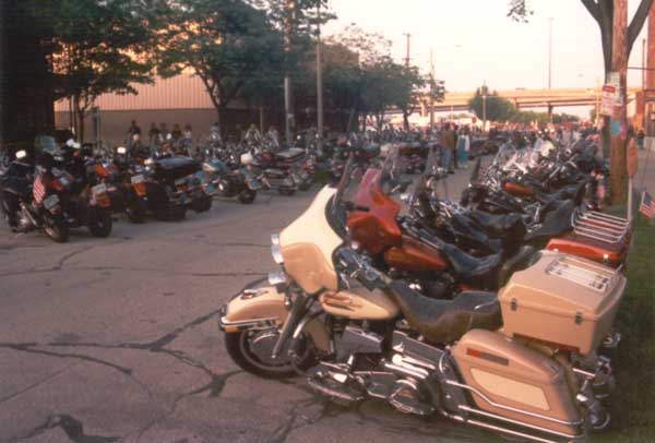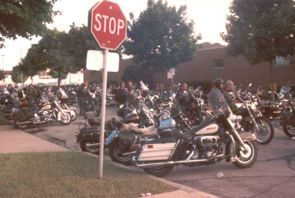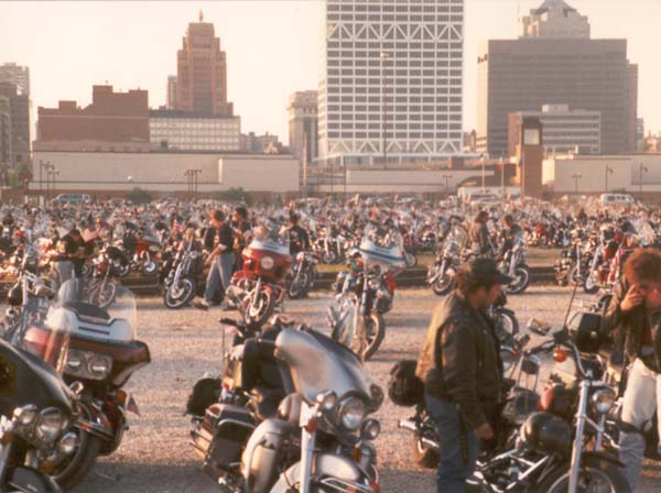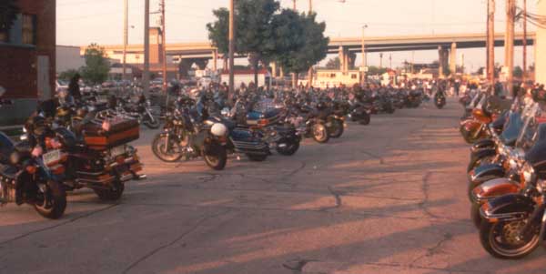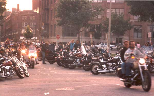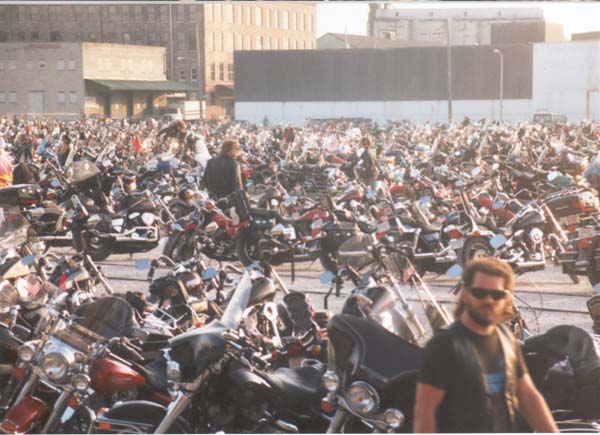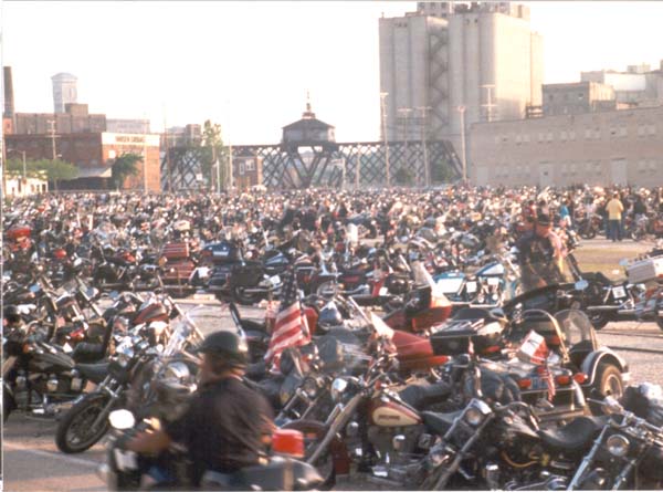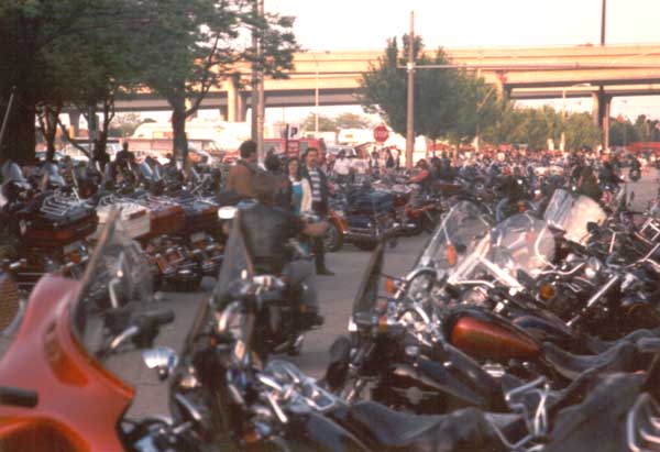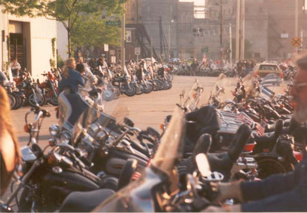 and the parade has finally finished. Most of the bikers are parked, and