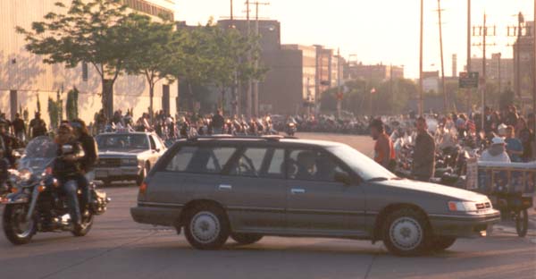 Parked several blocks away, and heading for the festival grounds. |