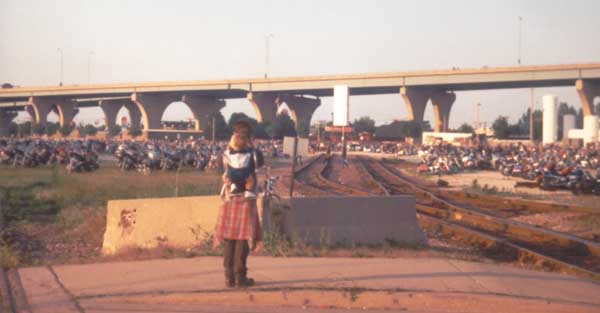The Highway, the big finger, and acres of bikes. It is now early evening,