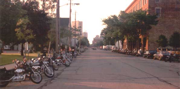 Streets have been turned into motorcycle parking lots. |