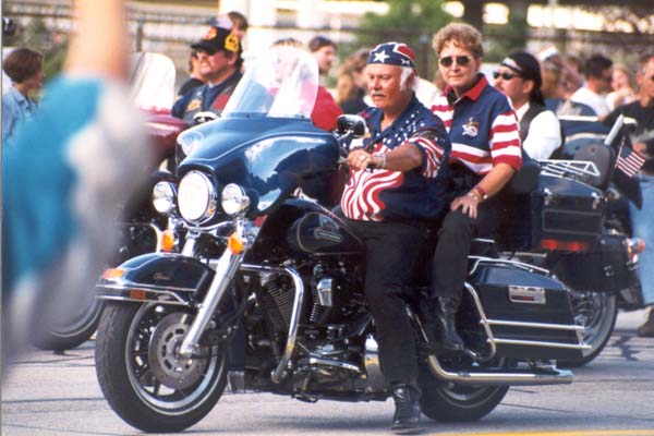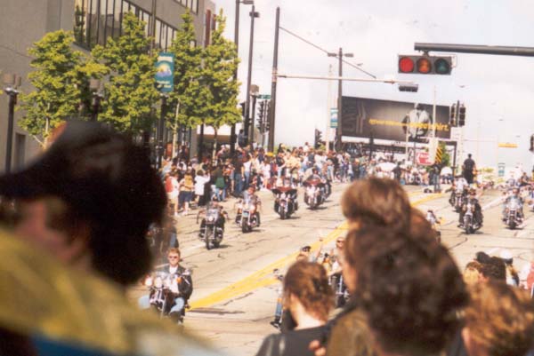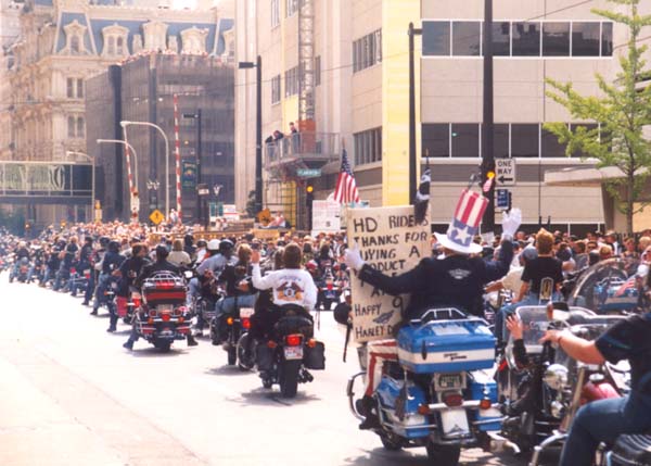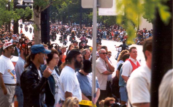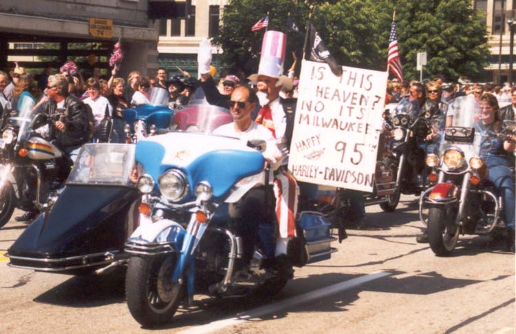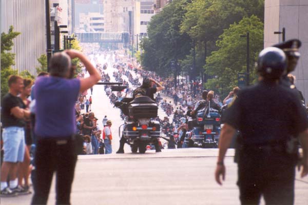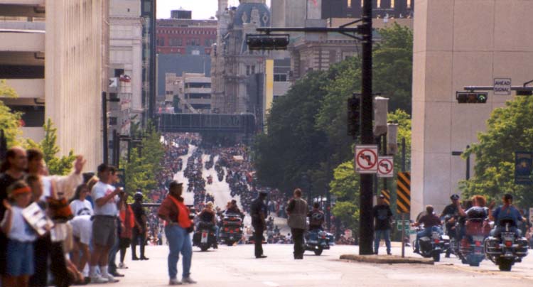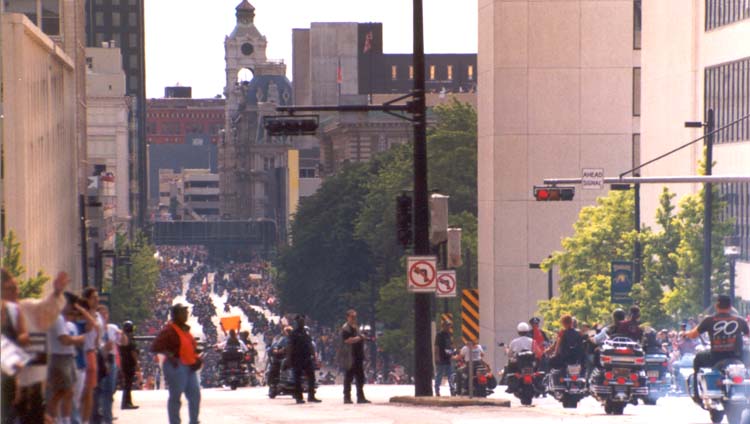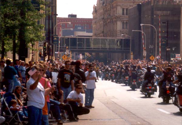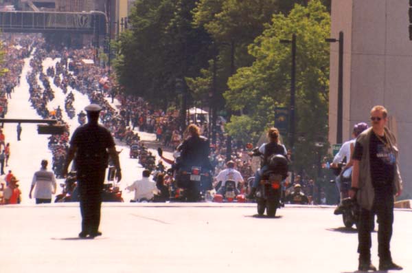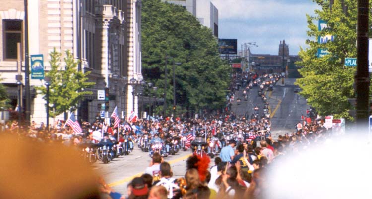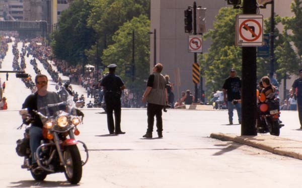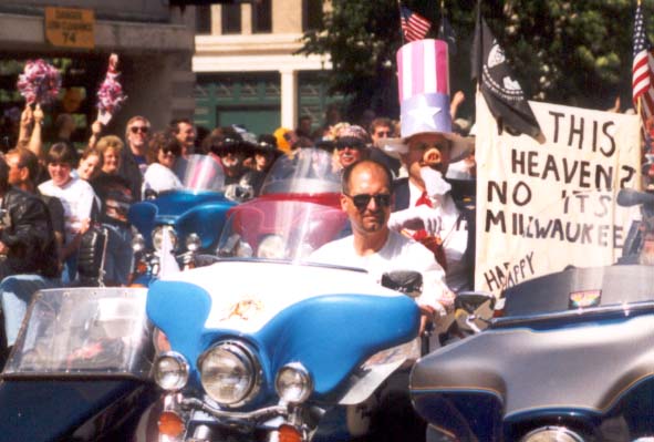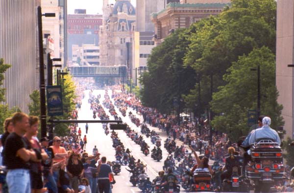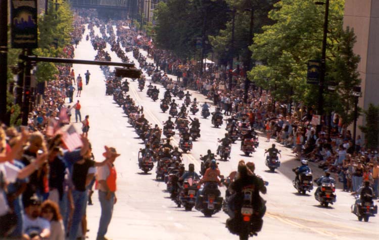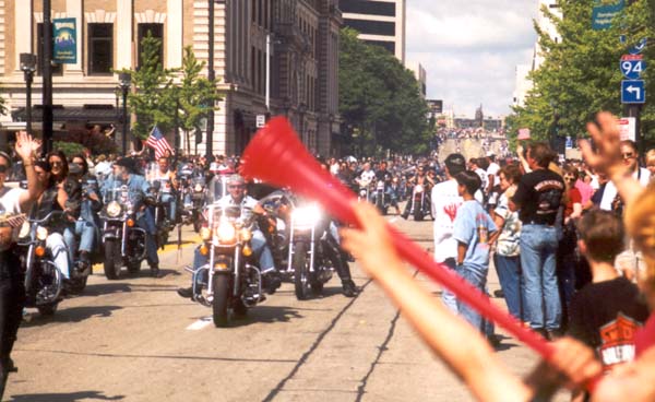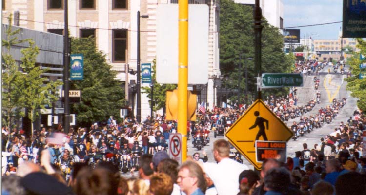 the Milwaukee River. As always, we can also see throngs of people and motorcycles.