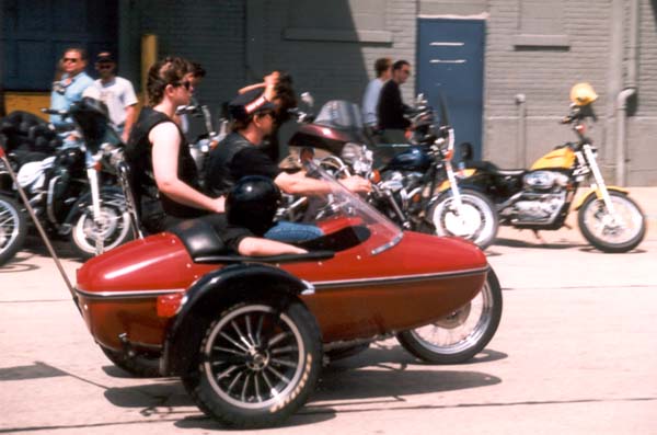 Hoping to get just a bit closer, a red sidecar rig