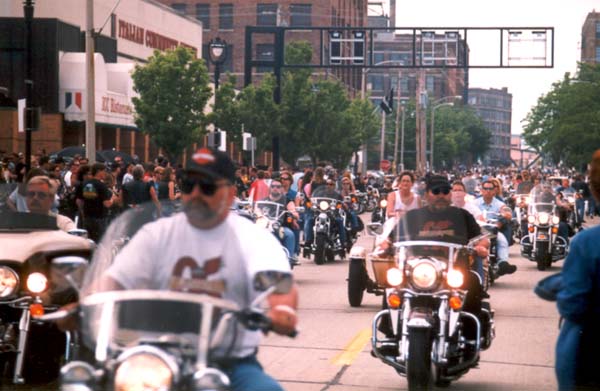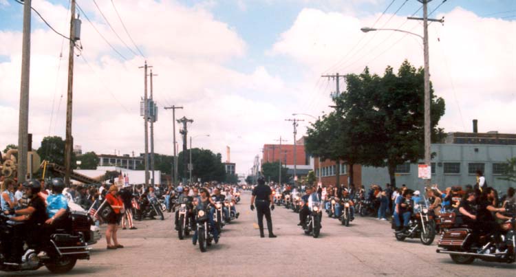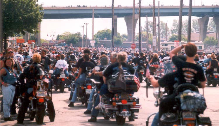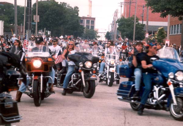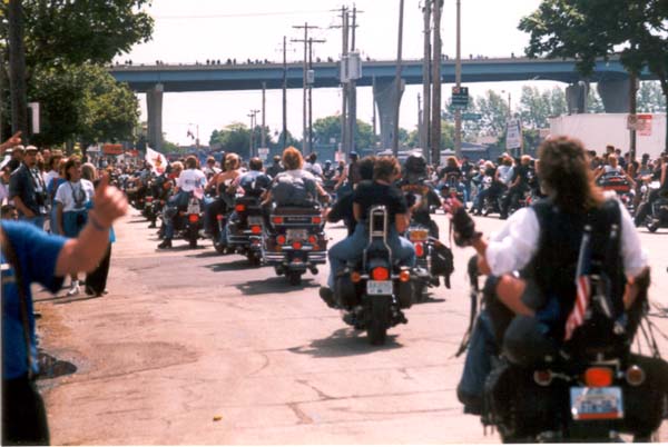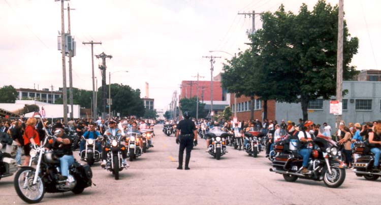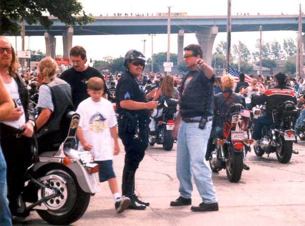 end of the parade route, though riders go off in every direction here. Traffic