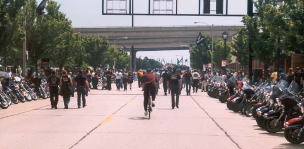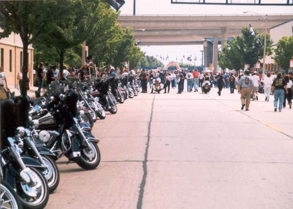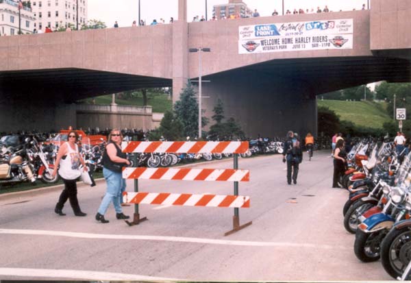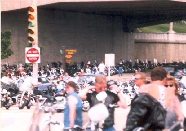 Lincoln Memorial Drive continues to fill with motorcycles.