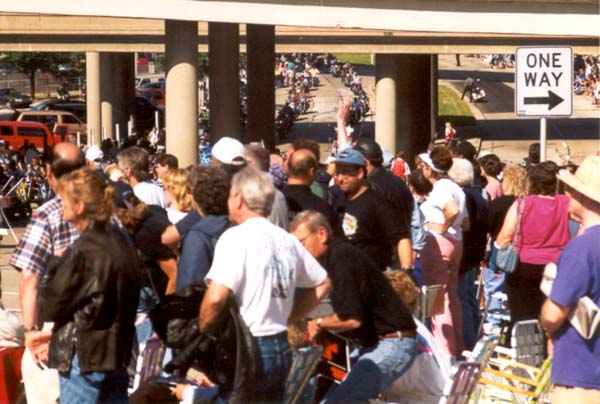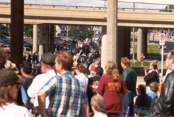 Part of the freeway overpass system can be seen here. Many of the bikers decided