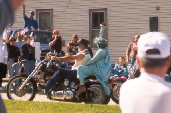 to watch, rather than ride in the parade, their bikes are lined up behind