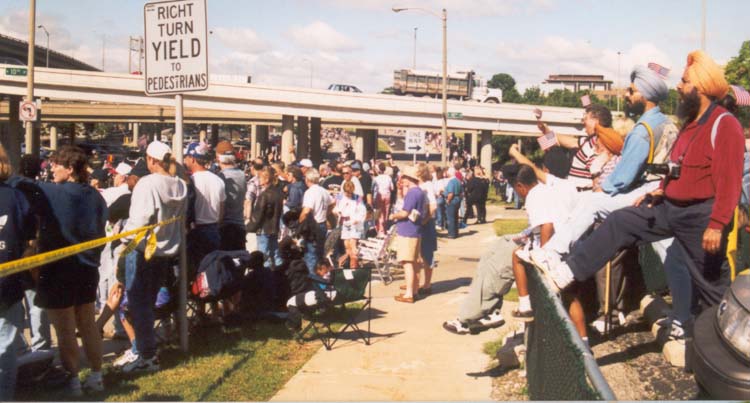 people stationed on overpasses, and ramps with signs or just waving hands,