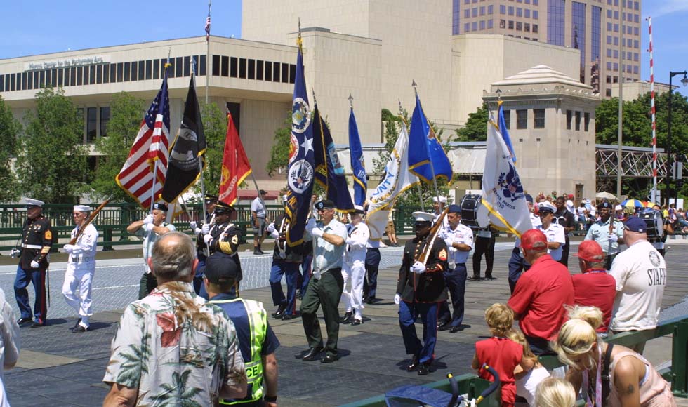 The color guard passes in review |