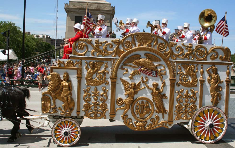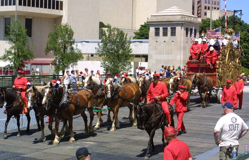 Bandwagon pulled by 10 Sorrel Belgians Teamster: