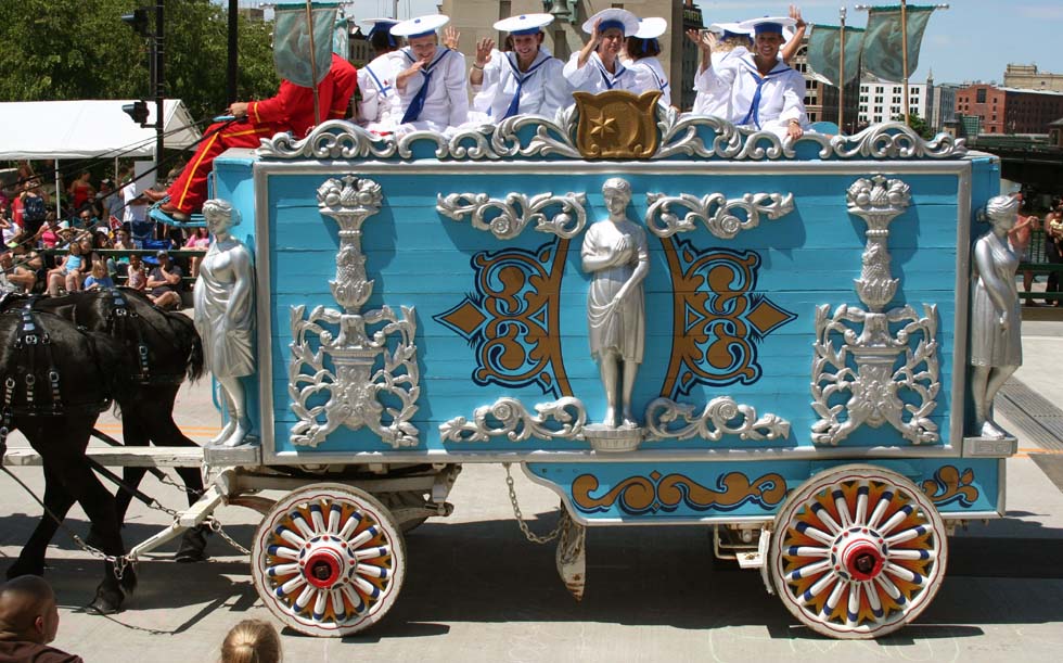 circus topriders in period sailor girl costumes: Anita Schwed,