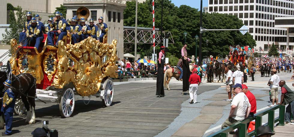 #116 Ken Maynard Air Calliope pulled by 4 Clydesdales. Teamster: