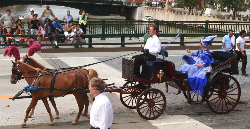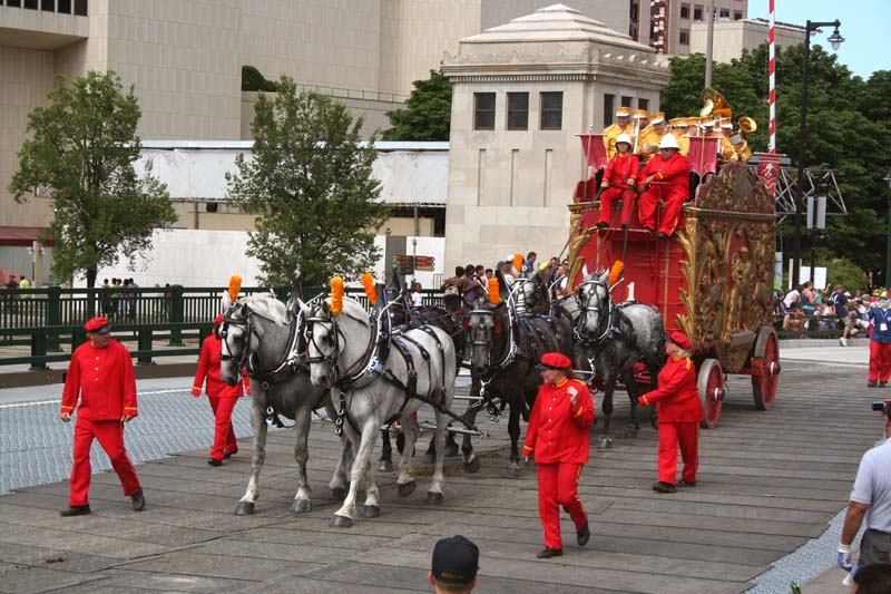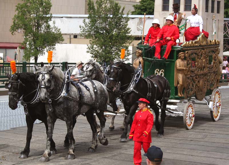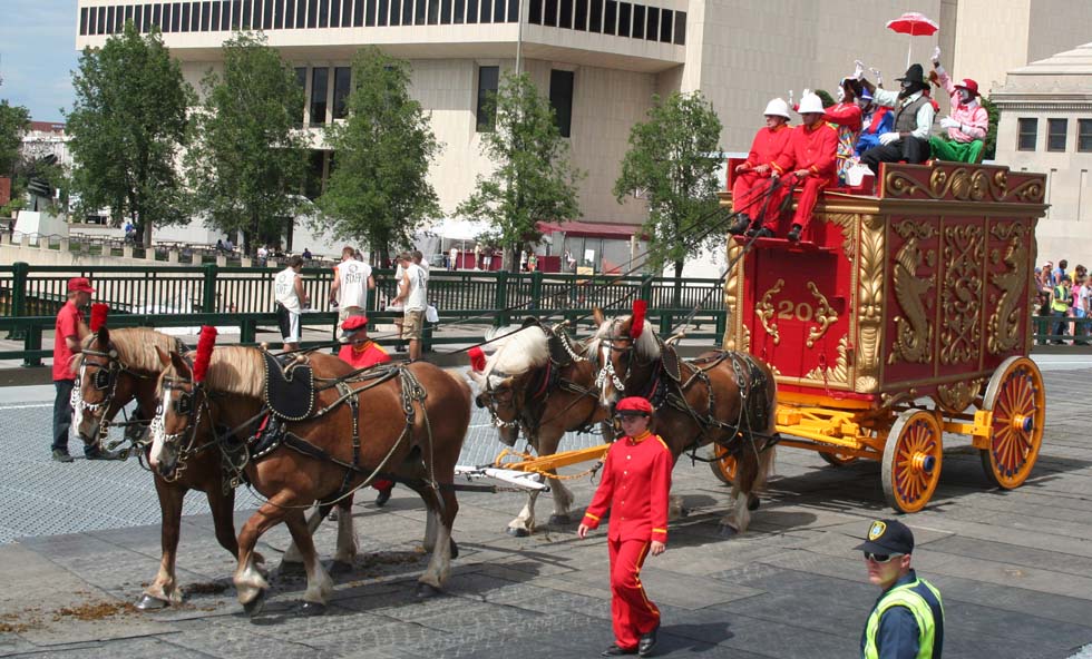 Robinson Bandwagon pulled by 6 Black Percherons. Teamster: