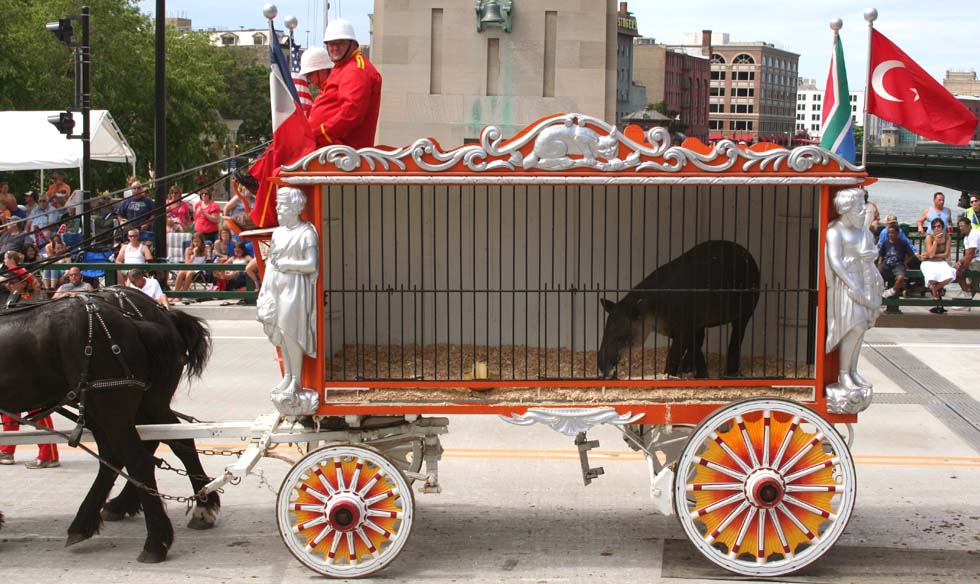 Terrell Jacobs Wolf Tableau pulled by 4 Ponies.