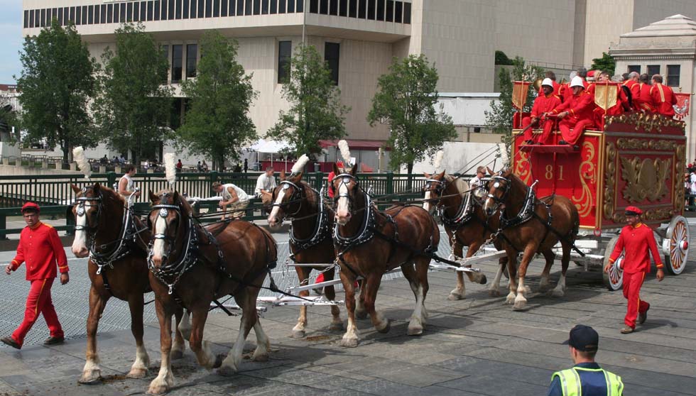 Bandwagon pulled by 4 Belgians