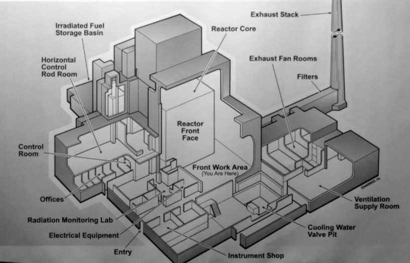 The B Reactor is the sort of crown jewel of a Hanford Site tour. It is one of only a select few reactors that is open to the public. The reactor was built in 1943, specifically to produce plutonium for use in atom bombs. At the time of its construction, the scientists were not certain exactly how much of the new material would be required. So one of the jobs of the B reactor would be to make plutonium for experimental use, allowing the scientists and engineers to determine its critical mass (which they did not know at the time **See Footnotes), and decide how it might be used, and how much would be required. The B reactor, as built, was 250 times more
