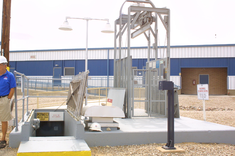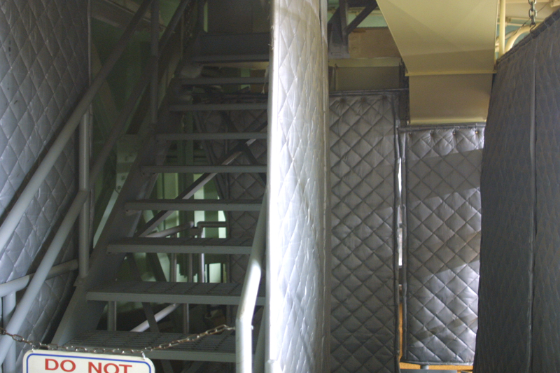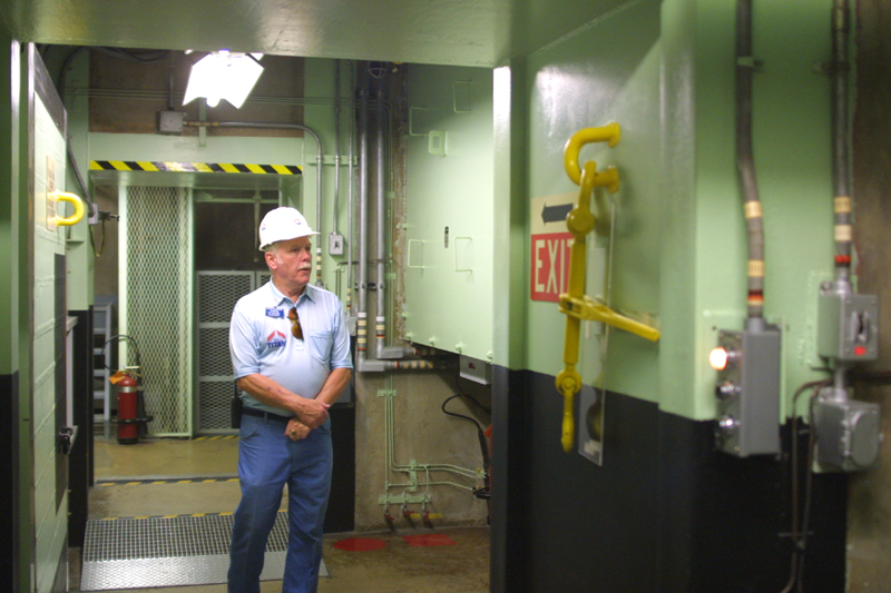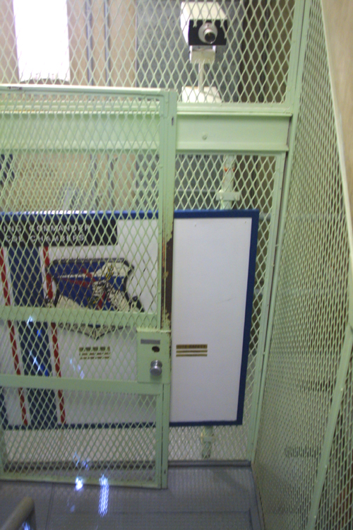 Behind him, can be seen the main entry, and the gate to the elevator.