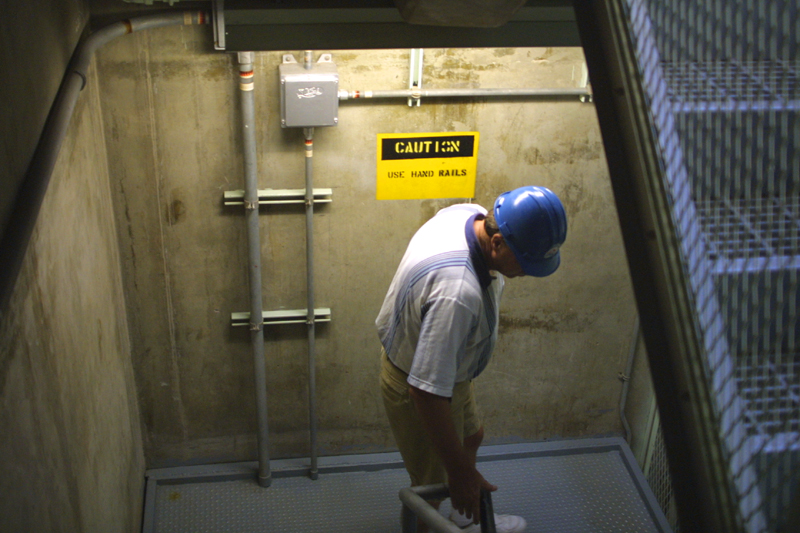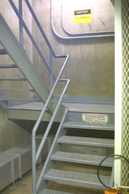 or stumbling on a stairway. A phone at the bottom, was used to request the
