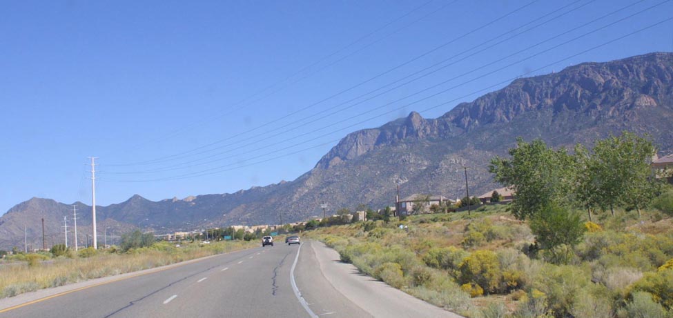 The road to Sandia leads out of town, along old Route 66.